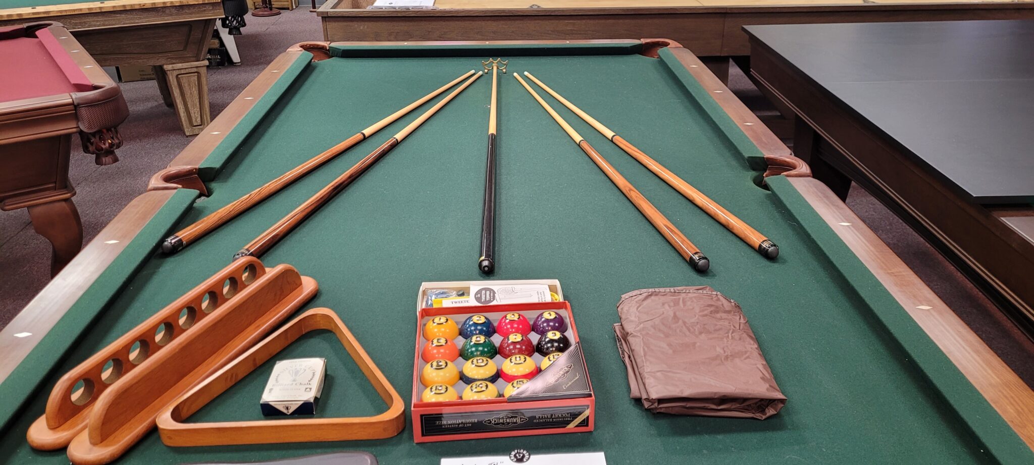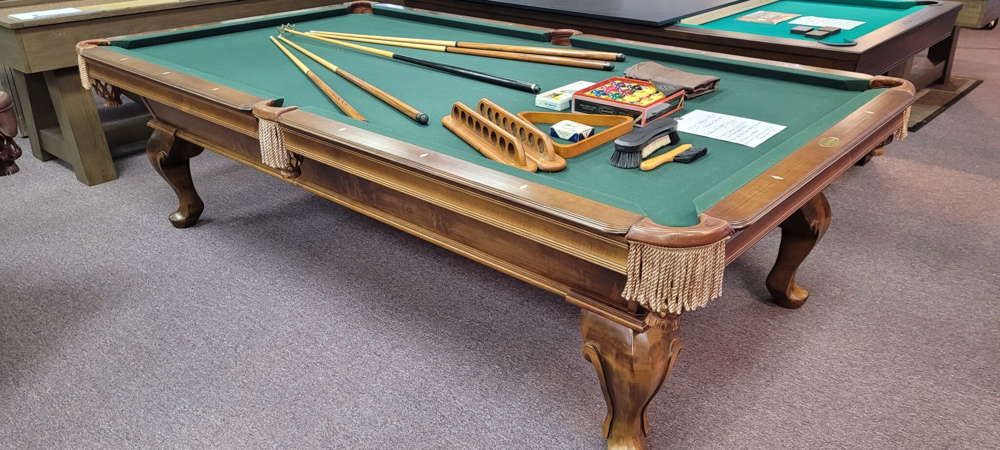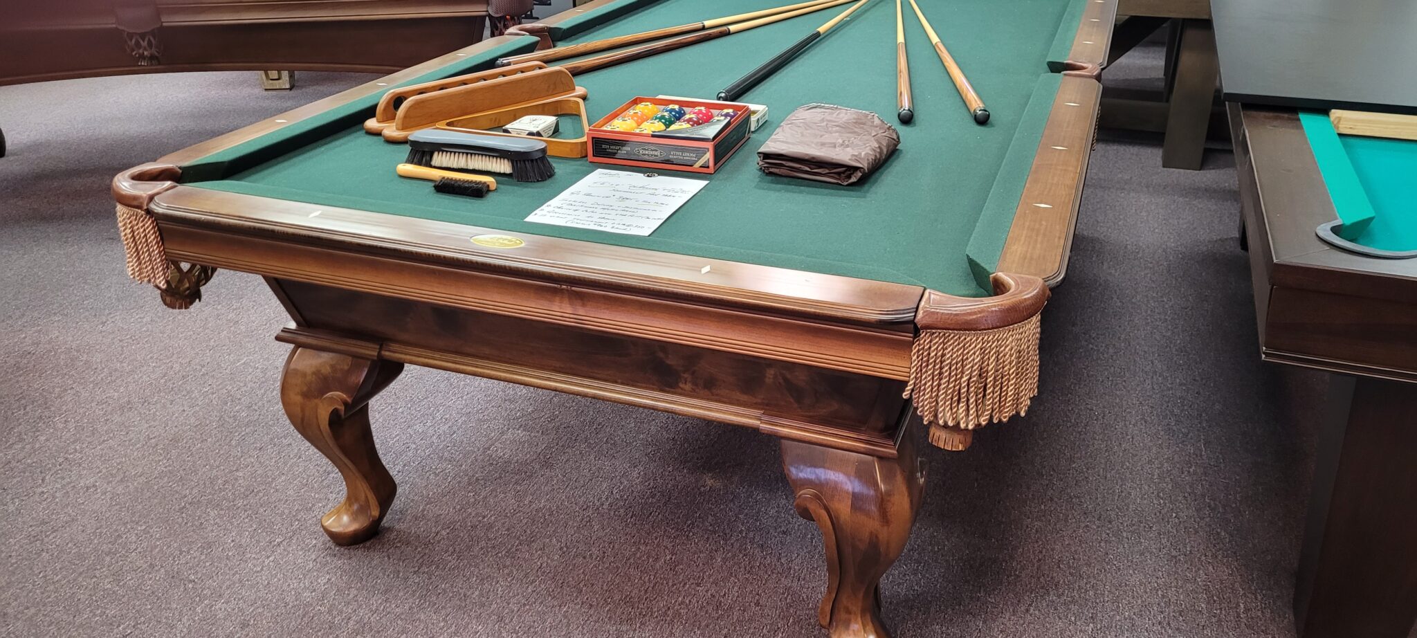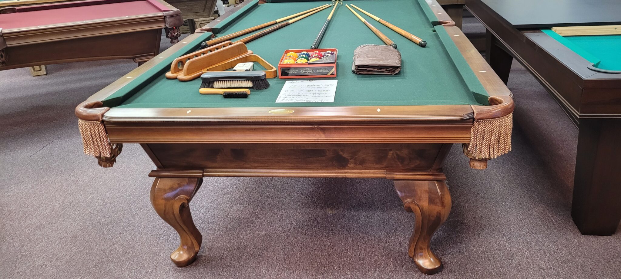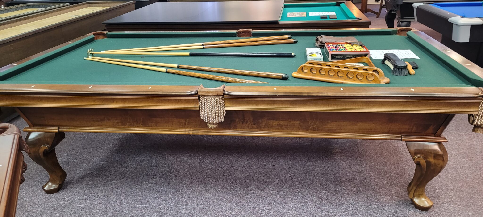 4 1/2 x 9 Olhausen SommersetCategories: Reconditioned Billiard Tables Olhausen Sommerset, 9′ Size, Solid Maple, Diamond Sites, One Inch Framed Slate, Accu-Fast Cushions, Leather Drop Pockets, $3895.00 Delivered and Installed Balt./Metro Area, Includes Playing Accessories and New Felt Color