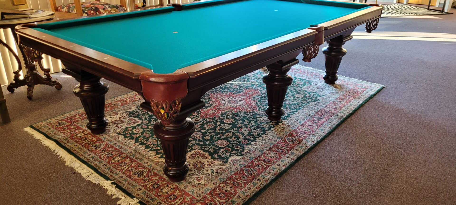 PETER VITALIE LE MEIUX POOL TABLE,4.5 x 9 SIZE ONE INCH SLATE, K-55 SUPER SPEED CUSHIONS, SOLID CHERRY WITH CHERRY FINISH , 6 LEG DESIGN, MOTHER OF PEARL DIAMOND SITES, DROP LEATHER POCKETS, INCLUDES CUSTOM SOLID CHERRY DINING TOPS, DELIVERED AND INSTALLED BALTIMORE/METRO AREA, INCLUDES PLAYING ACCESSORIES.$ 8500.00